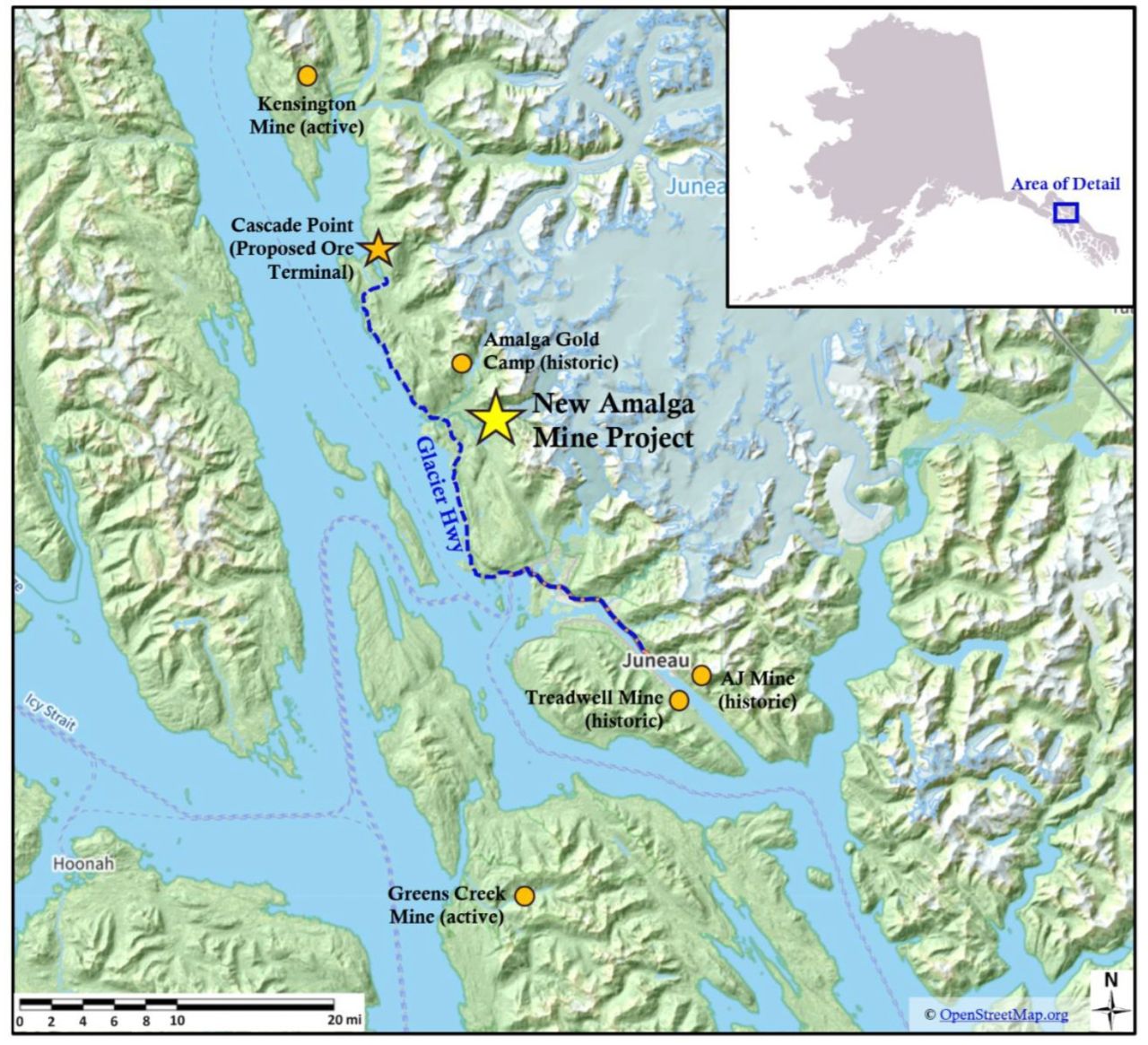 - LOI signed with Goldbelt Inc (an Alaska Native Corporation organized under the Alaska Native Claims Settlement Act) for development of an ore export terminal at Cascade Point, Goldbelt’s privately held parcel located only 22km from the project site.